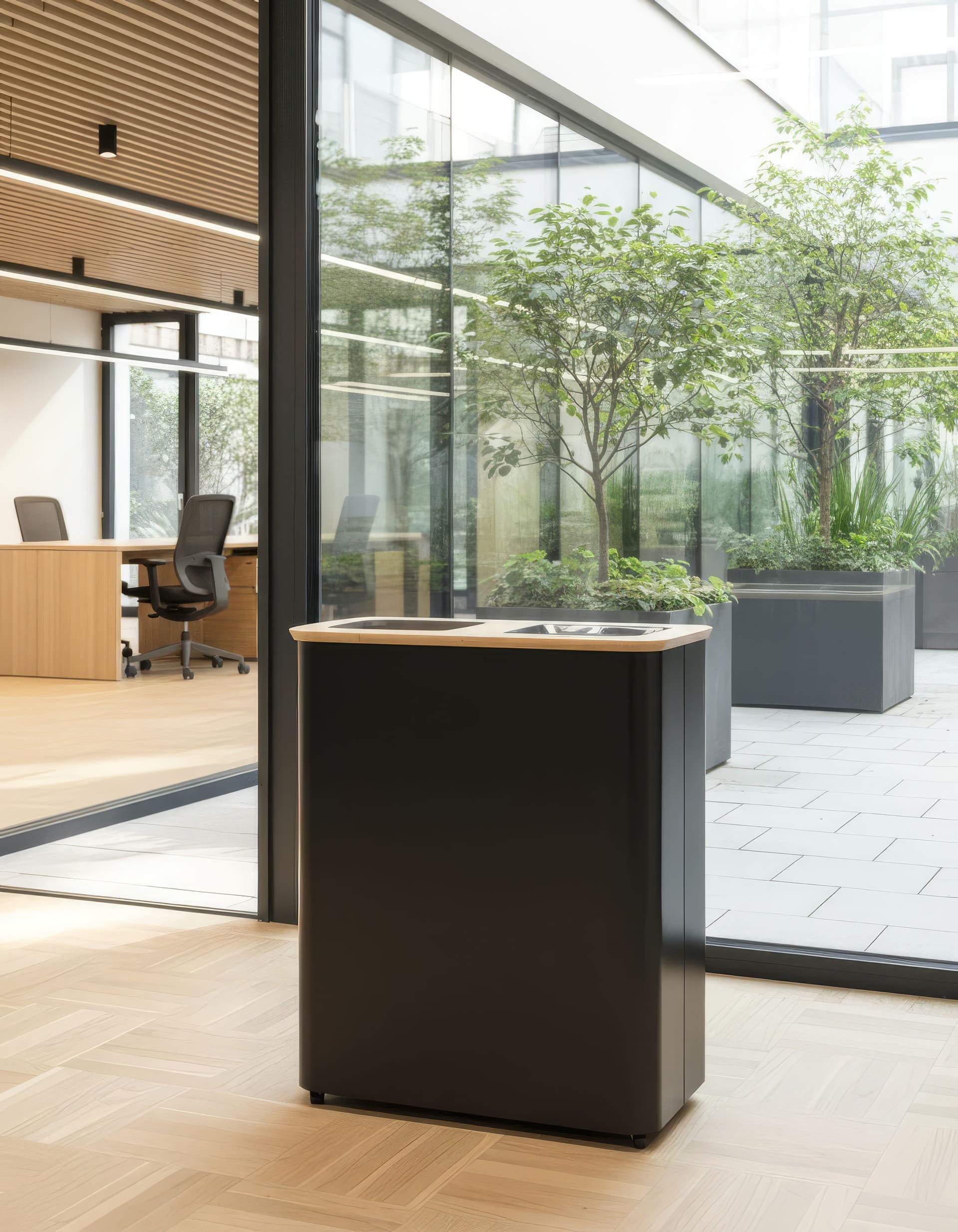 The BINBIN Public series is a Dutch-Designed, modular waste bin available in two sizes: 60 and 90 liters. Each bin can be configured with up to four compartments. Allowing you to create a sustainable solution tailored to your specific needs.