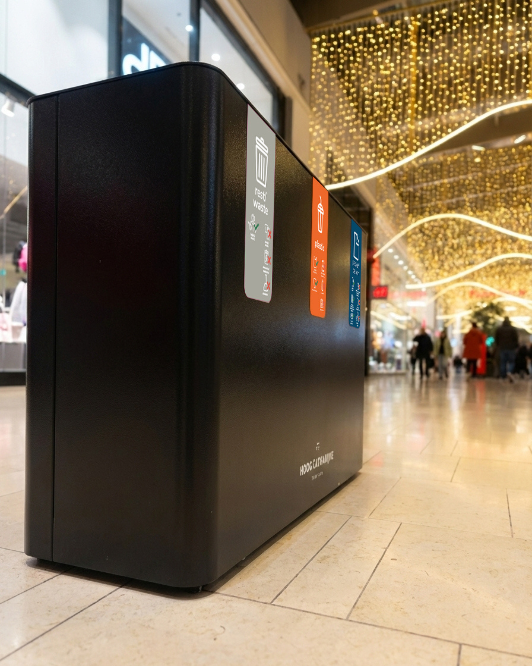 - Public presence & messaging: Bins that stand out, encourage correct use, and become sustainable practice.
