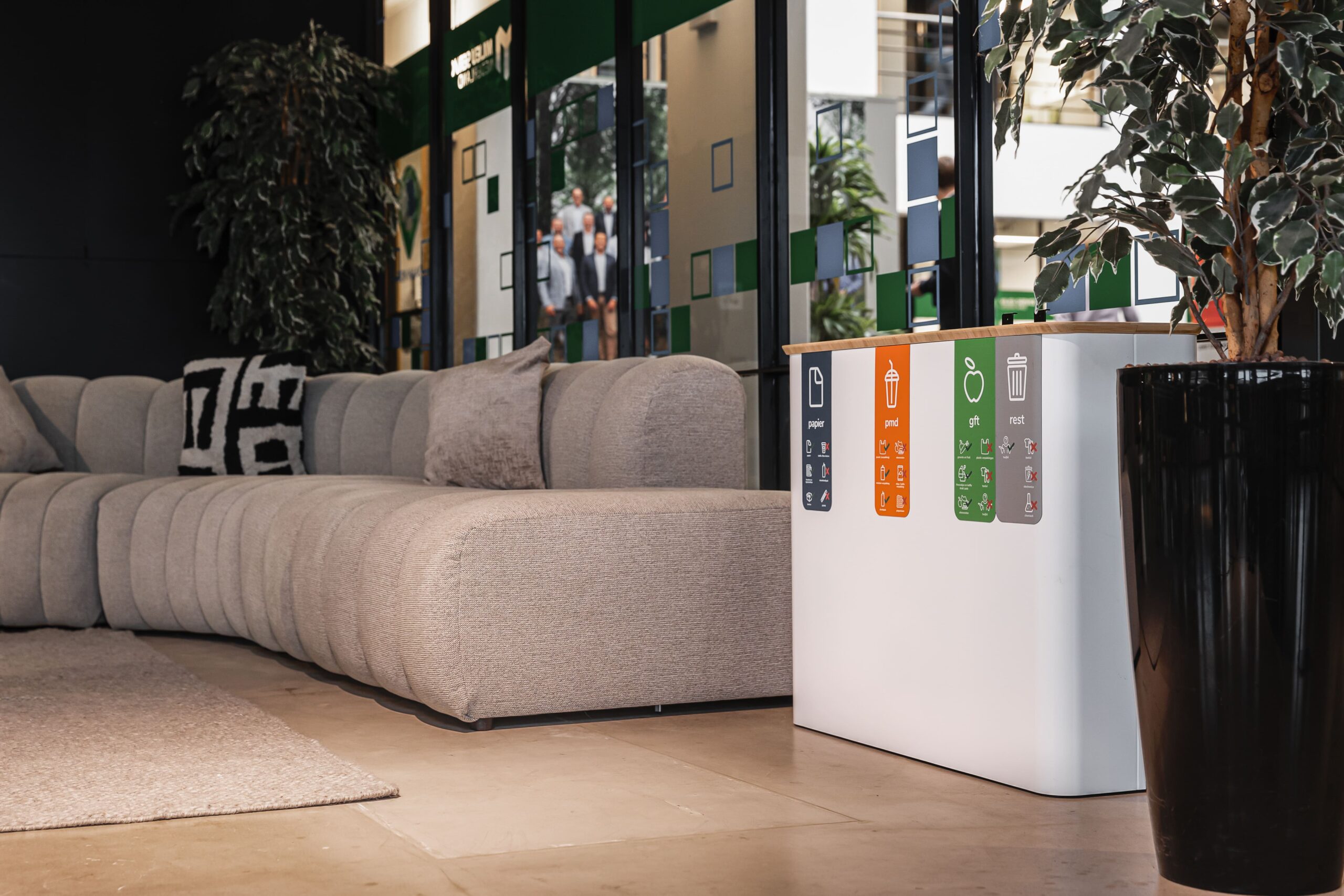 We want the signing to be as clear as possible for your employees/colleagues. That is why we have not only created signings for the front of the bin, but also for the top of the bin. So if you are standing next to a bin you can simply look down on it and see in which compartment you dispose your waste.