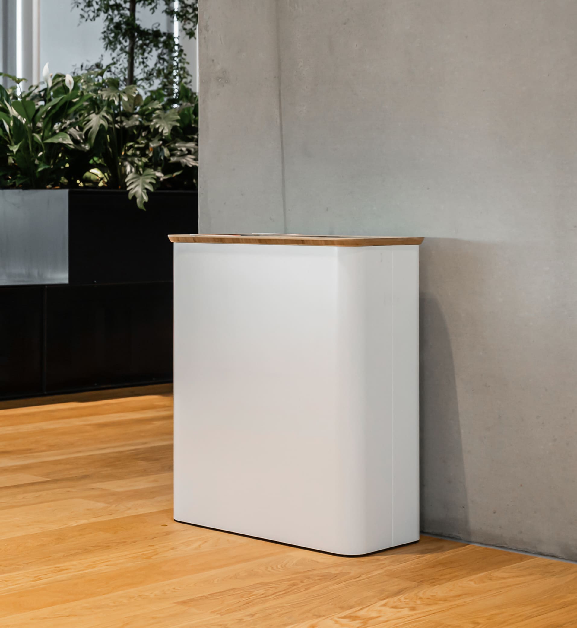 Unsere Produkte vereinen Stil, Funktionalität und Nachhaltigkeit und machen Mülltrennung einfach für jede Branche!