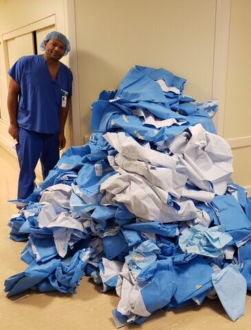 Es ist ein haltbarer, nicht gewebter Kunststoff, der in Operationssälen verwendet wird, um chirurgische Instrumente steril zu halten. Es ist hellblau, leicht und wird nur einmal verwendet, bevor es entsorgt wird. Krankenhäuser im ganzen Land produzieren jeden Tag Dutzende von Kilos davon. Doch nach dem einmaligen Gebrauch wird es in der Regel weggeworfen, obwohl das Material noch in einem hervorragenden Zustand ist. Wir sahen dies als eine verpasste Gelegenheit.
