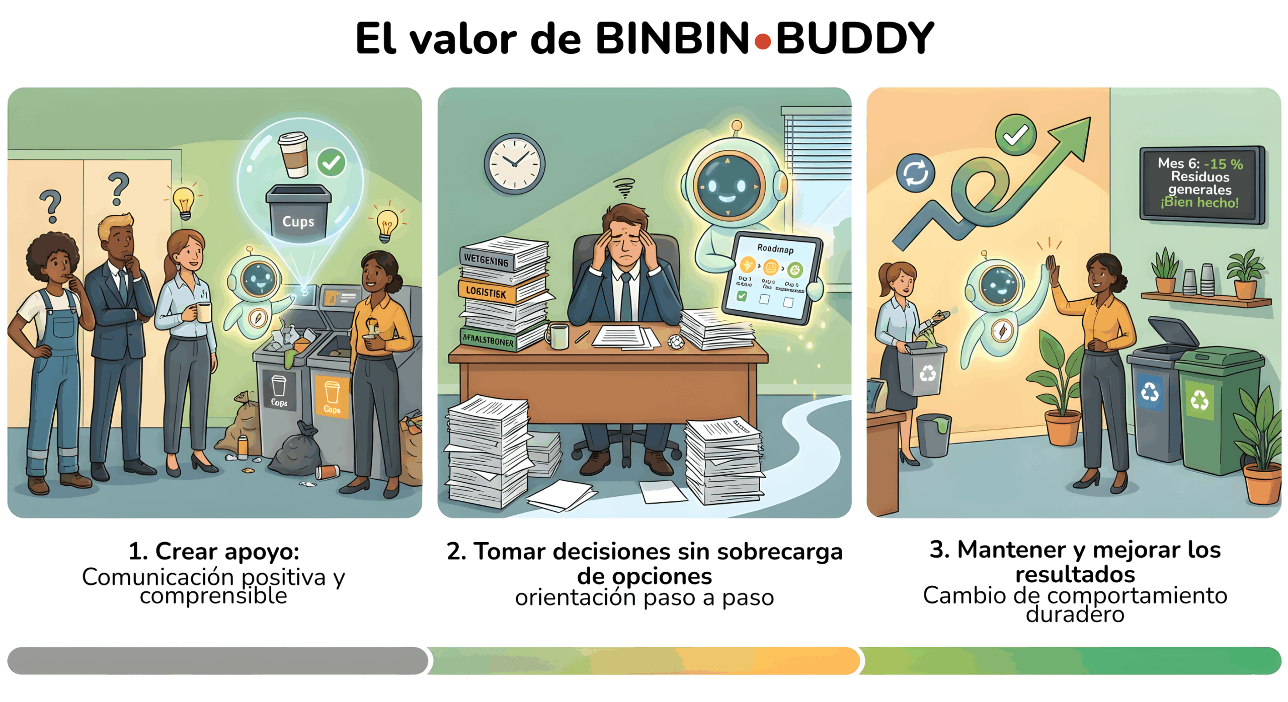 Con el BINBIN•BUDDY haces de la separación de residuos un enfoque respaldado con estructura, comunicación, formación y garantía.