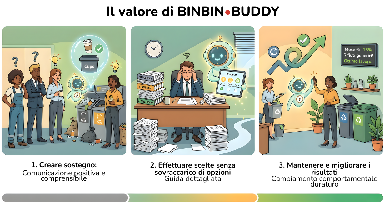 Con il BINBIN•BUDDY rendi la raccolta differenziata un approccio supportato da struttura, comunicazione, formazione e garanzia.