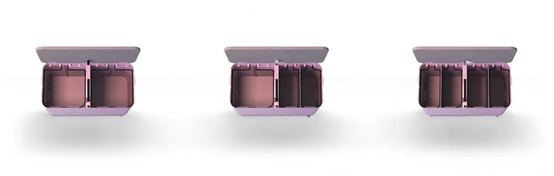 Il BINBIN Home è 100% modulare, e ti permette di separare fino a quattro flussi di rifiuti. Grazie al sistema modulare e personalizzabile, puoi scegliere la tua configurazione: 2×30 litri, 1×30 litri e 2×15 litri o 4×15 litri.