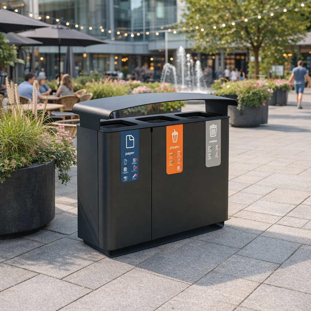 - Presenza pubblica & & messaggi: Cestini che si fanno notare, incoraggiano l’uso corretto e diventano una pratica sostenibile.