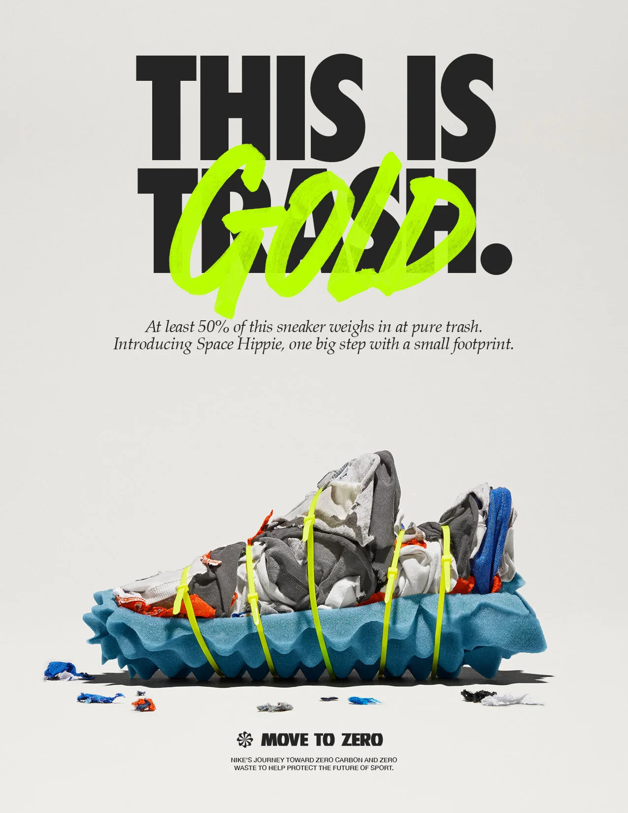 De Move to Zero beweging van Nike is een inspirerend concept waarbij nieuwe schoenen worden gemaakt van oude. Op deze manier produceert Nike geen afval, maar maakt er steeds weer nieuwe producten van. Hiermee sluiten ze de kringloop en zetten ze afval om in slijtage.
